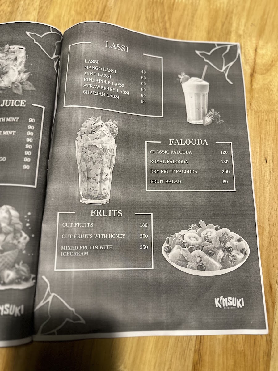 Beyond the main courses, Kinsuki also excels in refreshing beverages and delightful sweets. Don’t miss out on their famous Lassi—the Mango Lassi, in particular, is a crowd favorite, promising a burst of tropical flavors in every sip. For those with a sweet tooth, their Classic Falooda and Royal Falooda are indulgent desserts, lovingly prepared to offer a perfect end to your meal with their rich textures and colors.